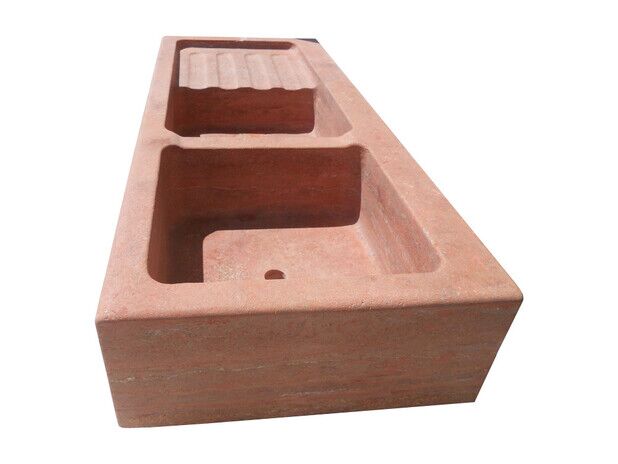 LAVABO MASSELLO DI TRAVERTINO ROSSO PERSIANO ANTICATO 120X53X20